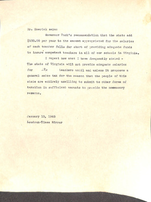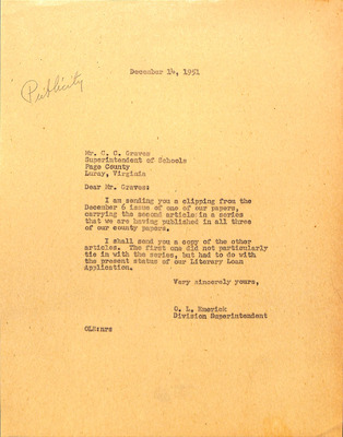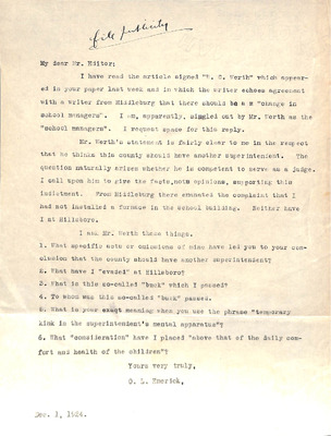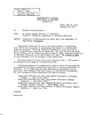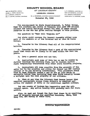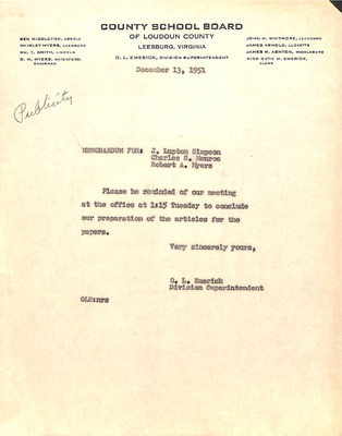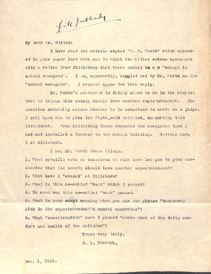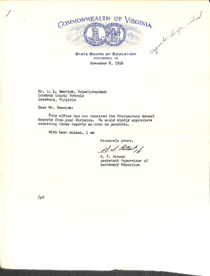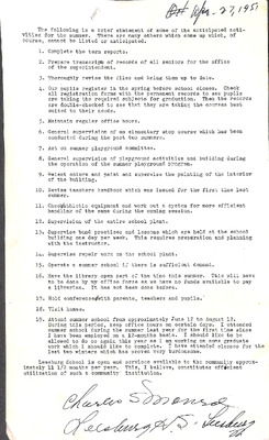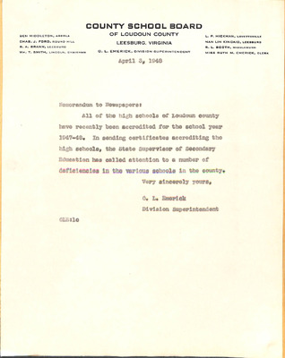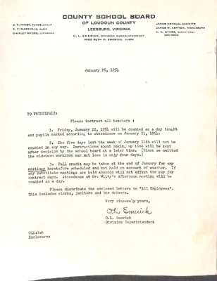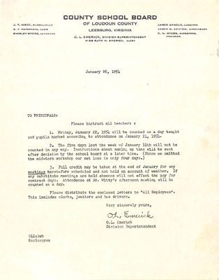 August 22, 1944 correspondence from Superintendent O.L. Emerick citing highlights of the 1944-45 school year. Highlights include: date of 1st day of school, compulsory attendance law, traffic laws around school buses while loading or unloading students, authorized school bus passengers