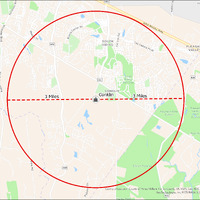 It's estimated that the maximum distance students would have walked to this school is 3 miles one way. The graphic shows the area from which students may have walked to this school.