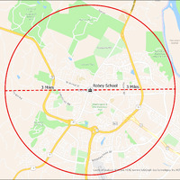 It's estimated that the maximum distance students would have walked to this school is 3 miles one way. The graphic shows the area from which students may have walked to this school.