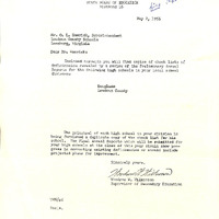 letter, May 2 1956, Loudoun County Schools, deficiencies, high schools, Virginia, education, standards, progress, Final Annual Reports, educational practices