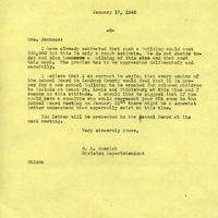 Division Superintendent, O. L. Emerick, letter, Mrs. Jackson, construction, school building, colored children, Loudoun County, cost, School Board, St. Louis, Middleburg, committee, PTA, Meeting, racial segregation.