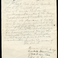 Dated April 2, 1930, this petition was submitted by members of the Patrons Teachers League of the Purcellville Colored School to the Loudoun County Public Schools. The petitioners, residents of the Mount Gilead District in Loudoun County, Virginia, request that Mrs. E. M. Norton be retained as principal for the 1931 school year. The document reflects organized community advocacy for school leadership during the segregation era.